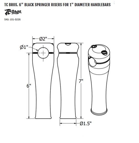 101-0226 RISERS 6" NOIR POUR FOURCHE SPRINGER PAR TC- BROS USA