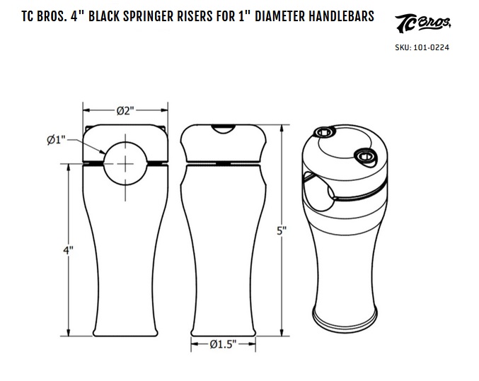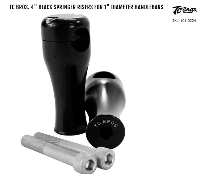 101-0224 RISERS 4" NOIR POUR FOURCHE SPRINGER PAR TC- BROS USA
