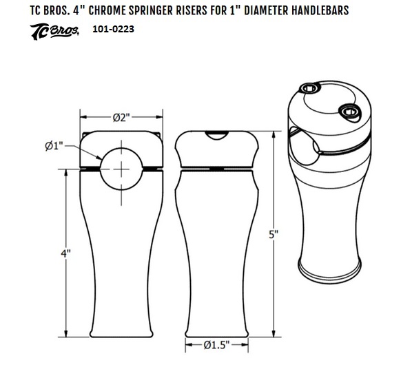 101-0223 RISERS 4" CHROME POUR FOURCHE SPRINGER PAR TC- BROS USA