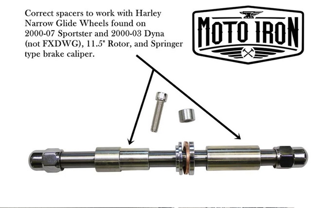 - Comprend un essieu et des entretoises de 3/4" pour les roues Harley Narrow Glide trouvées sur 2000-07 Sportster et 2000-03 Dyna (pas FXDWG).