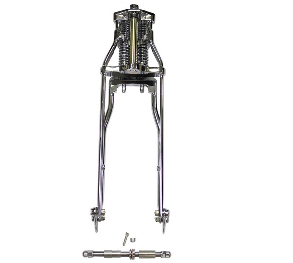 113-0114 FOURCHE SPRINGER STYLE ANTIQUE VINTAGE TYPE FL DE 36 A 48 CHROME 29.5" LONGUEUR STOCK PAR MOTO IRON MADE IN USA pour Dyna 91-17 et Sportster a partir de 2004