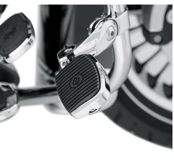 Compatible avec la position passager : tous les modèles avec repose-pieds passager à fixation mâle H-D® (sauf VRSC™ jusqu'à 2006, XL jusqu'à 2003, les modèles Dyna et Softail jusqu'à 2005 équipés d'un échappement Shotgun).