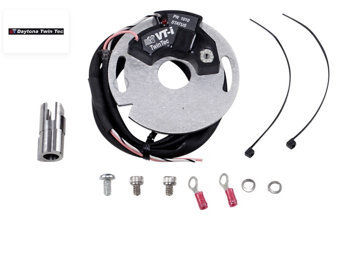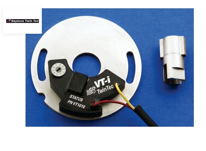 Ultra fiable il peut être utilisé sur les 1979-1984 Shovelheads, 1984-1999 Evolution Big Twins et 1978-2003 Sportsters. Ils se montent avec une unité d'avance mécanique avec le rotor qui est livré. L'allumage VT-i dispose d'un limiteur de régime réglable de 5200 à 7000 tr/min (par paliers de 200 tr/min), une diode LED pour faire le calage d'allumage statique et un contrôle électronique pour une saturation de bobine optimale. L'allumage VT-i est compatible avec plupart des bobines d'origine et aftermarket dual fire avec 3 à 5 ohms de résistance primaire. Il se monte très facilement avec seulement deux fils et est idéal pour le démarrage au kick car il fonctionne à partir de 6 volts