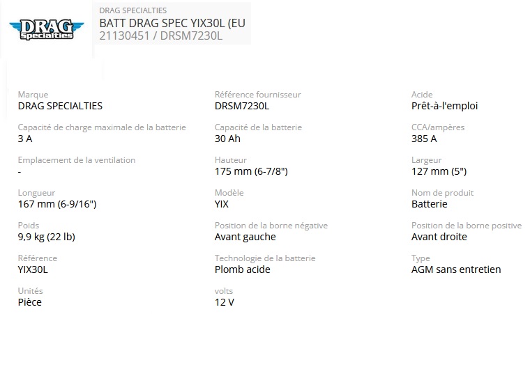 existe en version:...BATTERY YIX30L-BS...par "drag specialties"