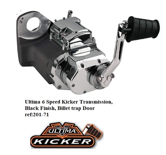 ref:201-71 BOITE DE VITESSES 6 RAPPORTS NOIR ET CHROME PAR ULTIMA POUR SOFTAIL DE 91 A 99