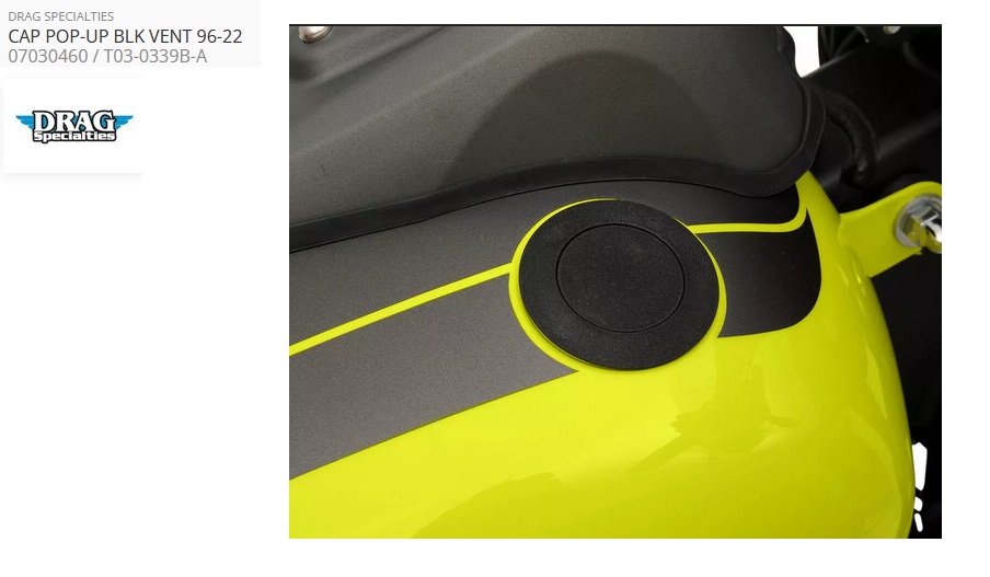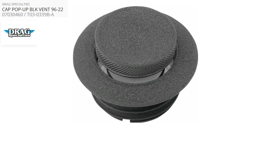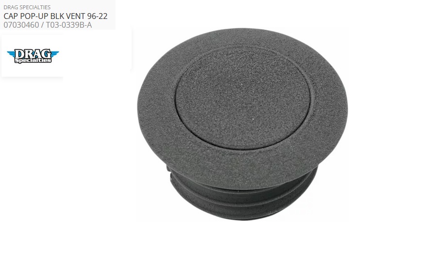 ref:07030460 BOUCHON POP UP NOIR WRINKLE VENTILLE POUR MODELES A PARTIR DE 96 PAR DRAG SPECIALTIES