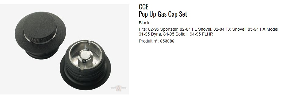 Bouchons de réservoirs 'à ressort' à visser Donnez un look custom à votre réservoir d'essence sans avoir besoin de couper, souder ou ré-appliquer de la peinture ! Ces bouchons doivent juste être vissés dans vos boulons de réservoir existants. Ils sont presque à plat à l'état fermé. Ils sont faciles à ouvrir avec un quart de tour du milieu du bouchon. Construction d'aluminium en billettes avec finition chromée ou ridée noire. Disponibles pour une vaste gamme de modèles et années de construction.