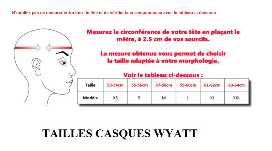 N’oubliez pas de mesurer votre tour de tête et de vérifier la correspondance avec le tableau ci-joint dans l'image