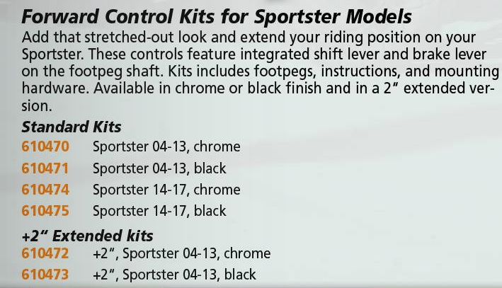 COMMANDES AVANCEES POUR SPORTSTER DE 04 A 13 CHROME ref 610470