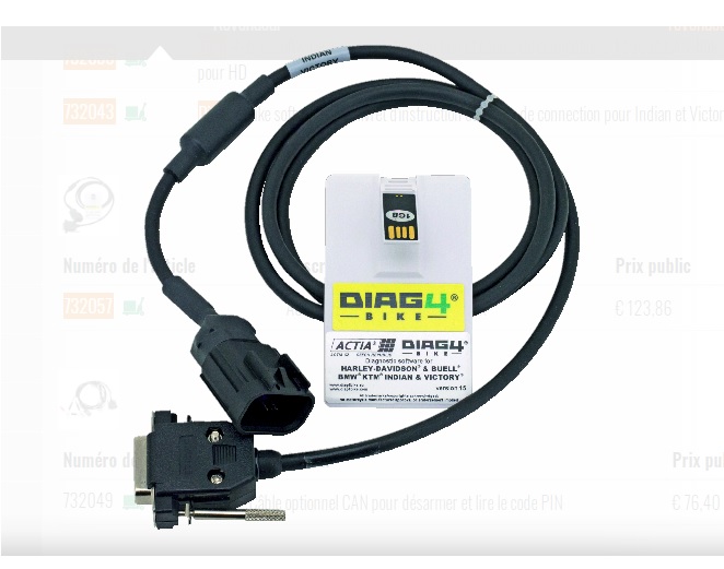 Pour commencer avec Diag-4-Bike vous devez commander le logiciel 732056 avec 732050 l'interface USB standard ou 732051 combiné USB et interface Bluetooth.