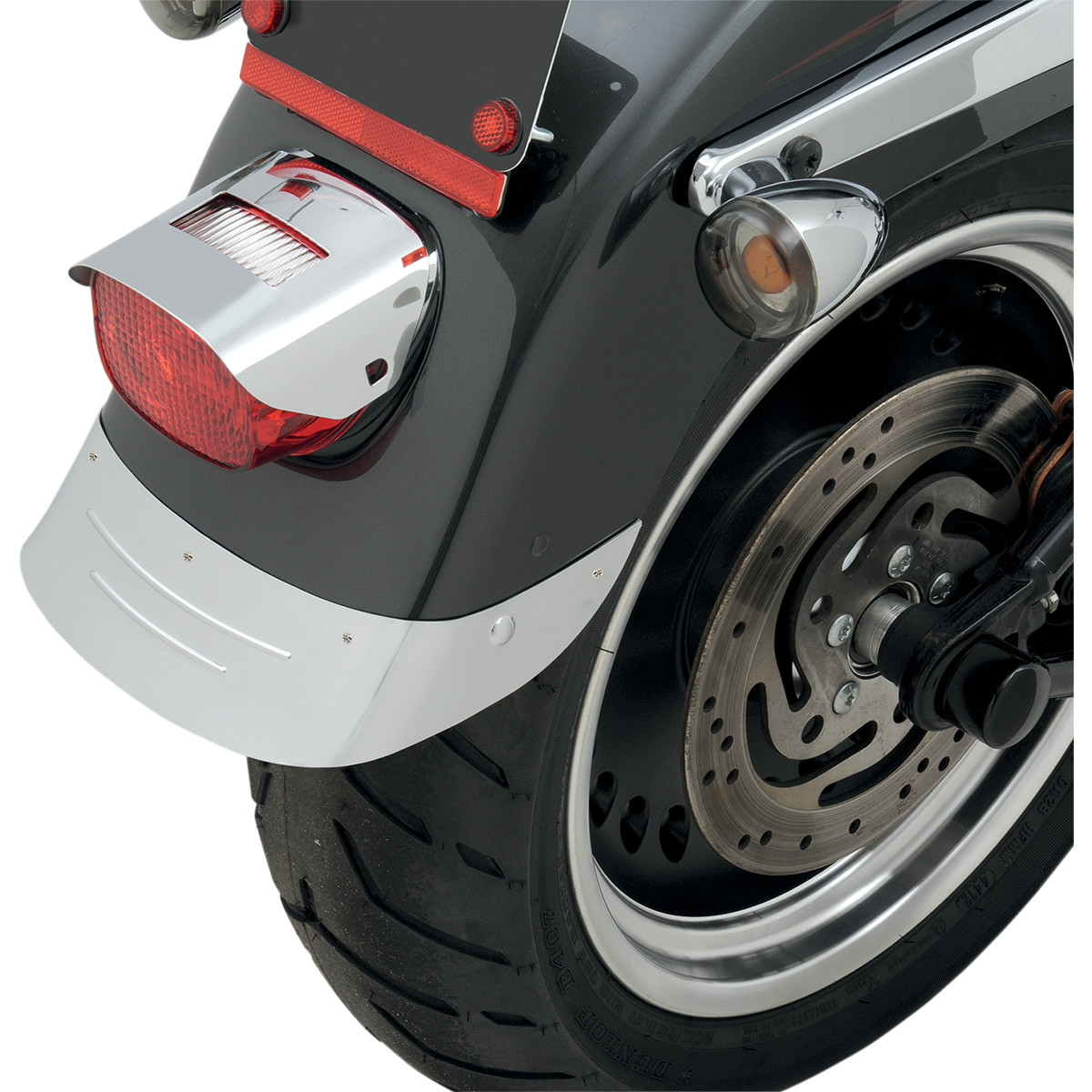 ENJOLIVEUR DE GARDE BOUE ARRIERE CHROME Embossé ref:1405-0171 POUR FLSTF DE 07 A 17 AVEC PNEU DE 200