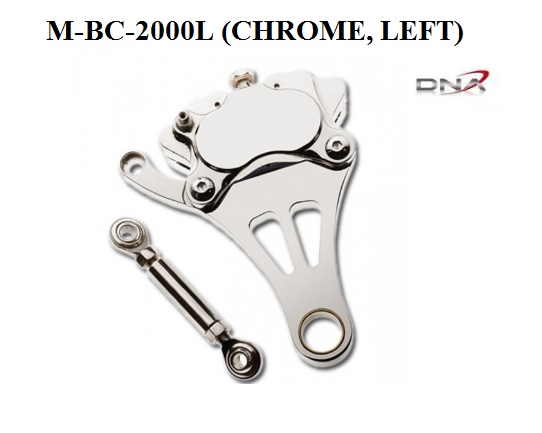 M-BC-2000L ETRIER DE FREIN AVANT GAUCHE CHROME 4 PISTONS POUR FOURCHE SPRINGER 1984-1999 "TYPE OEM,DNA, Hardbody (Mid-USA), Ultima, BIKERS CHOICE, & Paughco Springers" par DNA