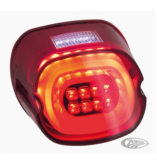 Le feu arrière Paradox dispose de LEDs pour le feu arrière, feu stop et éclairage de plaque d'immatriculation avec en option clignotants. Disponible avec lentille claire, rouge ou fumée pour tous les modèles de 1999 au présent avec des feux traditionnels sauf FXSTD Deuce, V-Rod, FXDF Fat Bob et les modèles avec un feu arrière Fat Bob ou Tombstone style. Note: Pour ceux avec clignotants vous pourriez avoir besoin d'un égaliseurs de charge en fonction de votre modèle ref:686596