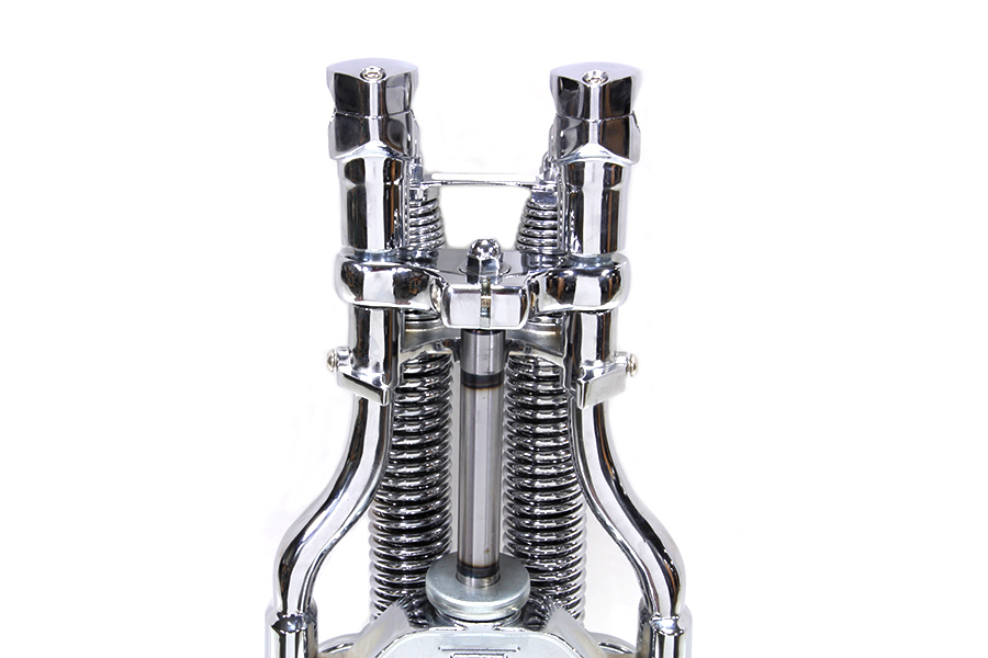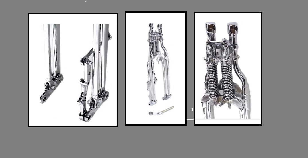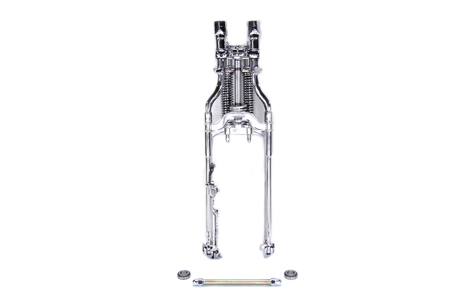 L'assemblage complet de la fourche à ressort FLSTS avec finition chromée est composé de 3 colonnes montantes, de roulements de colonne,de risers , de bagues, de pare-poussière, d'un arbre supérieur. Les fourches comprennent un axe de roue de  3/4 chromé avec écrous borgnes, un support d'étrier et un stabilisateur.