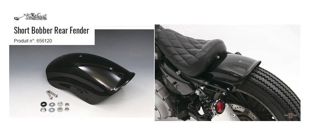 GARDE BOUE ARRIERE POUR SPORTSTER DE 2004 A 2006 ET 2010 ET APRES PAR EASYRIDERS TYPE BOBBED COURT OEM H3508 ref:656120