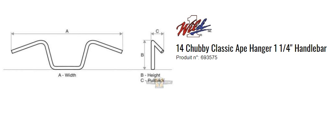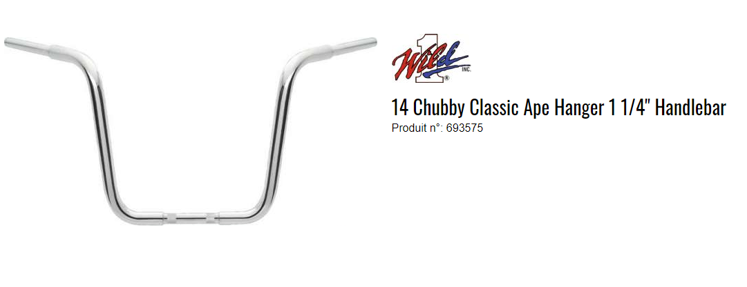 GUIDON APEHANGER CHUBBY TYPE CLASSIQUE 14 po CHROME 32 MM (1 1/4") ref:693575 AVEC ACCÉLÉRATEUR ÉLECTRIQUE