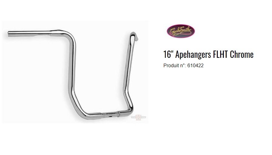 GUIDON CYCLESMITHS 1 1/4" APE 16" CHROME POUR FLHT ref:610422