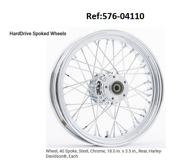 576-04110 JANTE ARRIERE 40 rayons chrome 18X3.5 pour modele apres 2000 pour axe 19mm.SOFTAILS DE 2000 A 2007 DYNA DE 2000 A 2005 SPORTSTER DE 2000 A 2004 TOURING DE 2000 A 2001