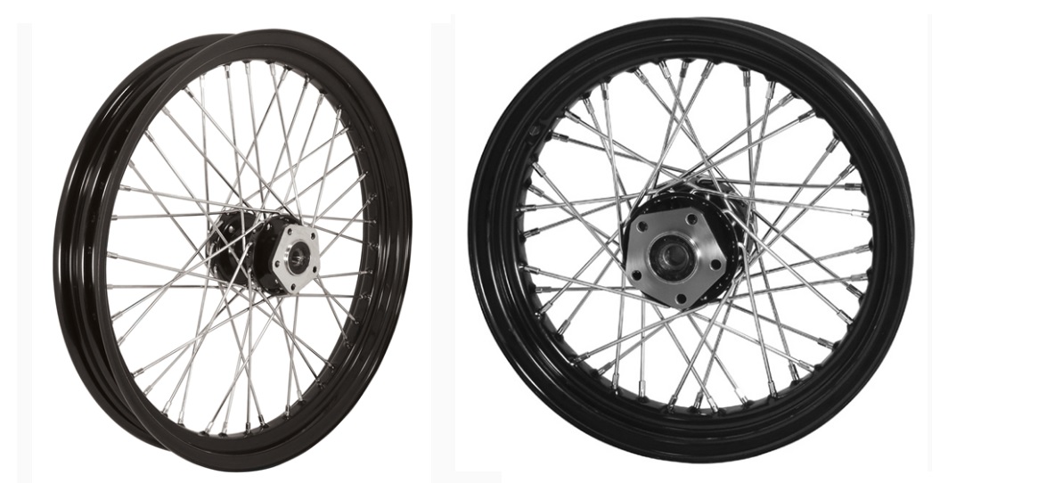 JANTE ROUE AVANT ET ARRIERE 40 RAYONS NOIR ET CHROME 16 X 3.00 DOUBLE DISQUE POUR BIG TWIN DE 73 A 84 ref:51685