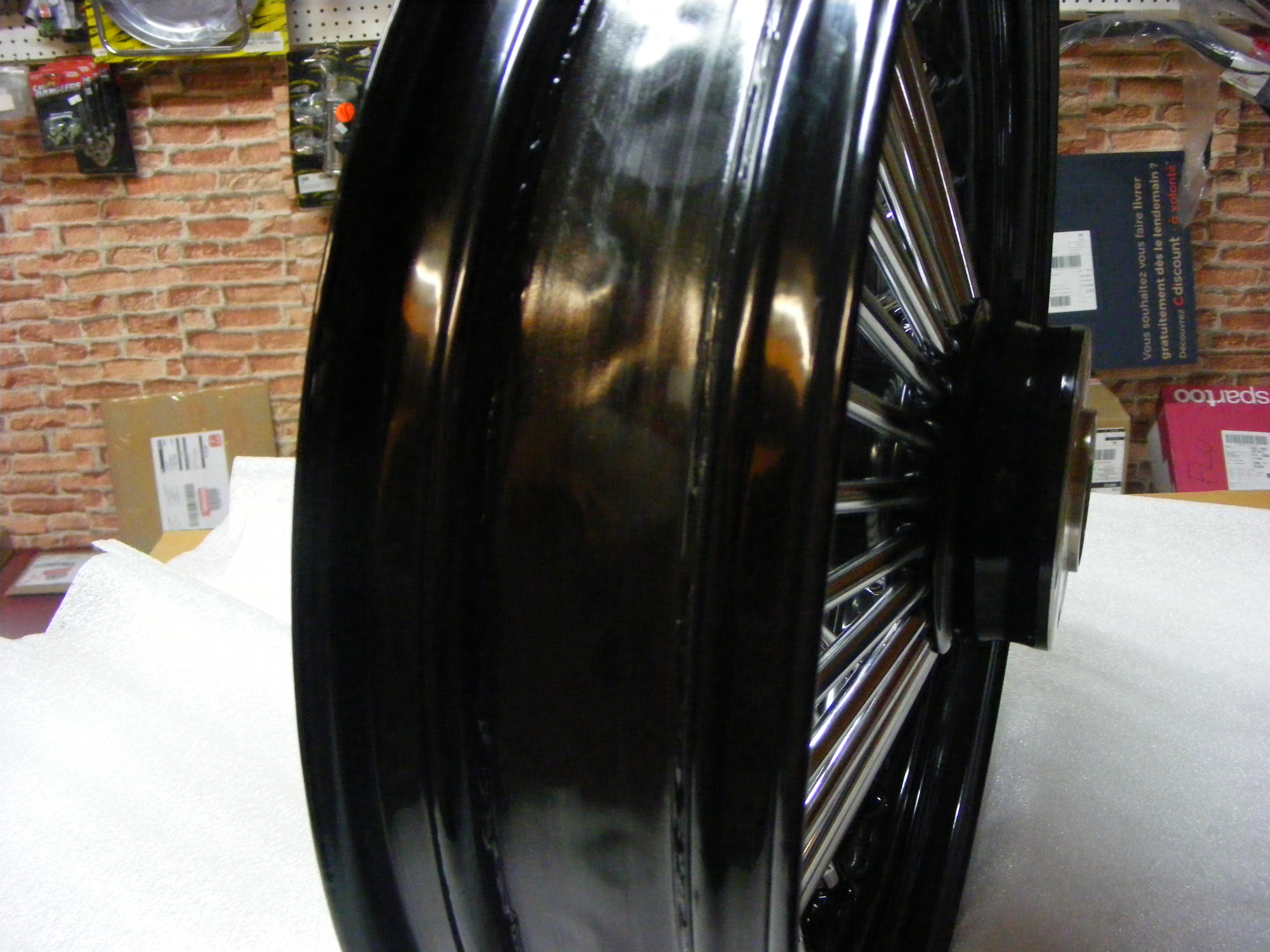 HD/576-04225 JANTE ROUE AVANT NOIR ET CHROME GROS RAYONS KING SPOKES DOUBLE DISQUE 21X3.5 ET AXE 19mm