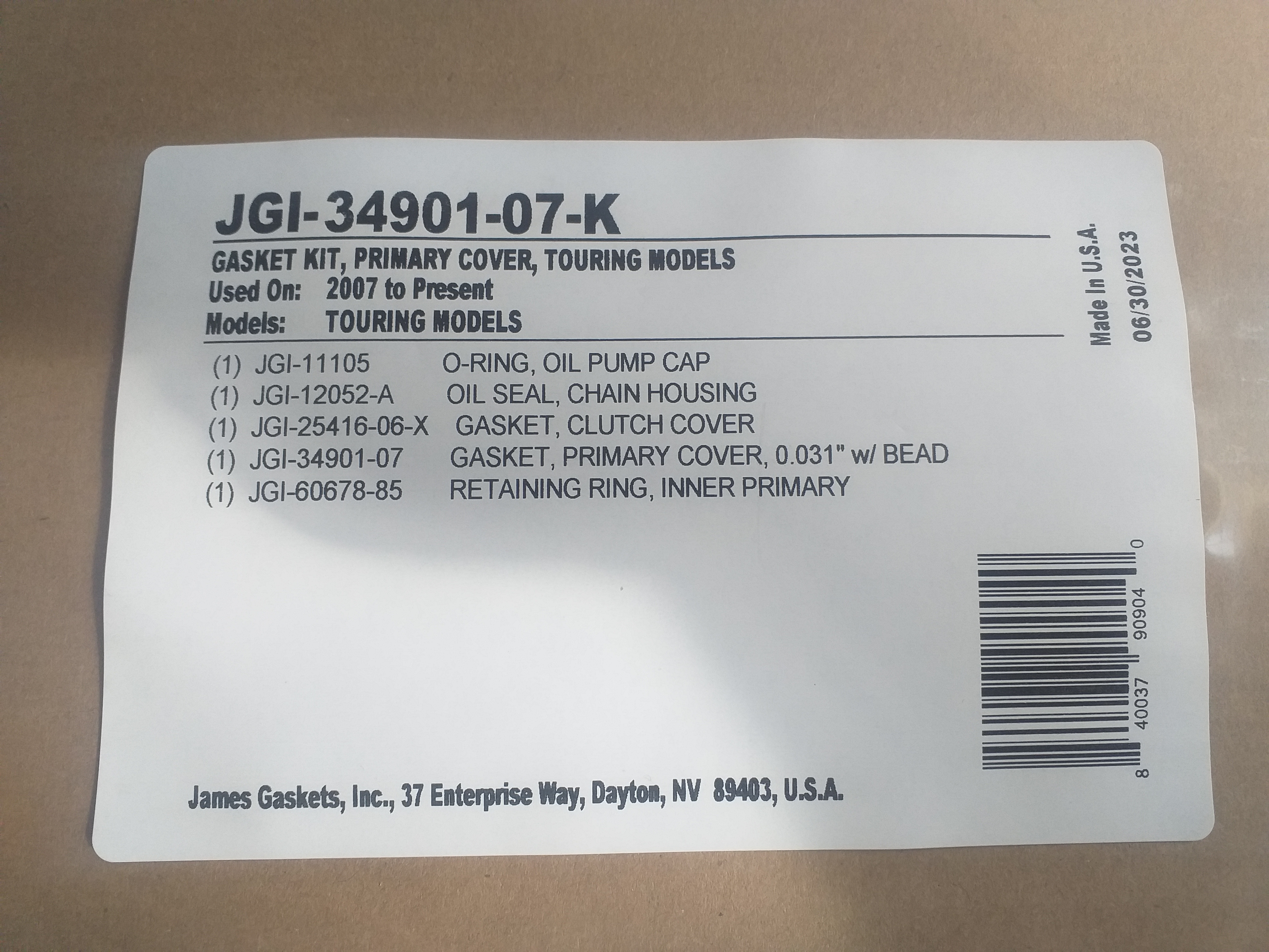 09341624 kit pochette de joint de carter primaire pour touring 07 a 16 OEM 34901-07-K PAR JAMES Gaskets