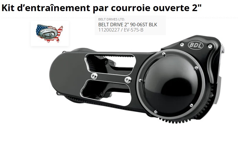 ref:11200227 kit de transmission primaire à courroie apparent EV-575 BDL NOIR pour softail 5 vitesses de 90 à 06 type oem EV-575-B PAR BDL USA