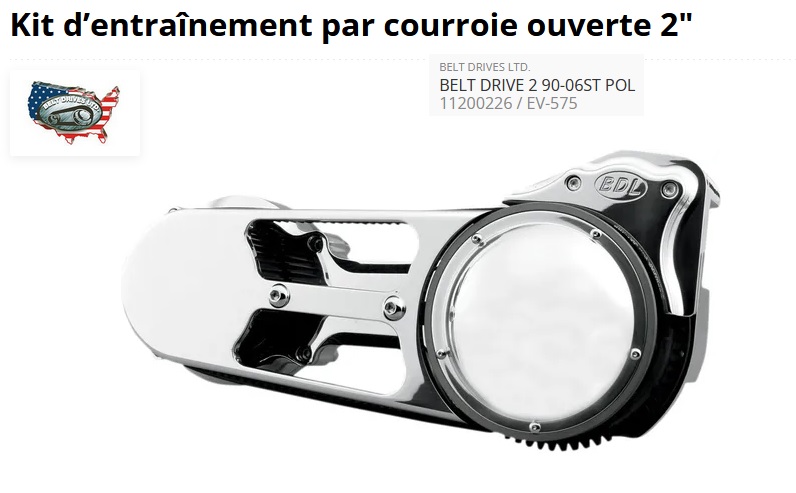 ref:11200226 kit de transmission primaire à courroie apparent EV-575 BDL poli pour softail 5 vitesses de 90 à 06 type oem EV-575 PAR BDL USA