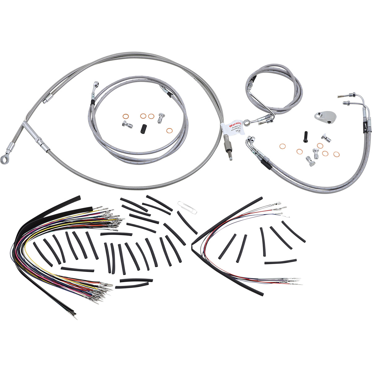 ref:06100748 KIT DE CABLES ET DE FAISCEAU DE GUIDON RALLONGES PAR BURLY POUR ROAD KING ET ROAD GLIDE DE 2008 À 2013 AVEC ABS INOX TRESSÉ POUR GUIDON DE 18" ACIER TRESSE OEM B30-1