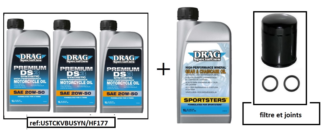 ref:USTCKVBUSYN/HF177B KIT VIDANGE MOTEUR COMPLET SYNTHETIQUE POUR BUELL AVEC FILTRE NOIR DE 2002 A 2010
