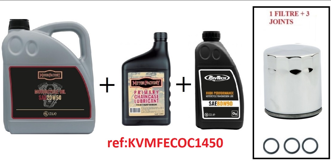ref:KVMFECOC1450 KIT VIDANGE ECO MOTEUR COMPLET (MOTEUR+BOITE+PRIMAIRE) HUILE MINERALE POUR TWIN CAM 1450 ET PLUS ... "AVEC FILTRE CHROME ET JOINTS "