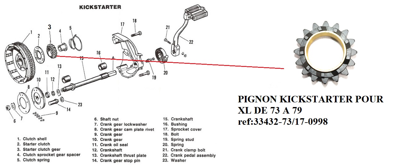 PIGNON KICKSTARTER POUR XL DE 73 A 79 ref;33432-73/17-0998