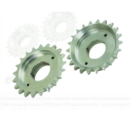 Ce pignons déporté est une solution simple quand vous voulez installer un pneu légèrement plus large sans utiliser de déport de boite. Pour 1986 à 2006 5 vitesses Big Twin (sauf 2006 Dyna) et 1991 au present Sportster . Ce pignon déporté est en 0,5" (12,7mm)