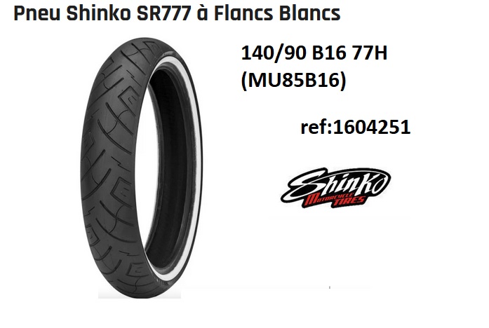 ref:1604251 pneu ARRIERE a flanc blanc WW Shinko SR777 140/90-16 77H TL renforcé MU85B16 (TYPE OEM MT/1604251)