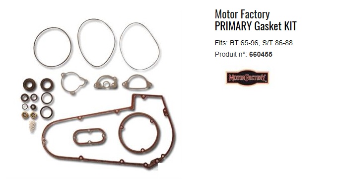 ref:660455 kit pochette de joints de transmission primaire pour Big twin 4 vitesses de 65 A 86 et softail 5 vitesses de 86 A 88 TYPE OEM MF660455