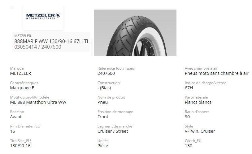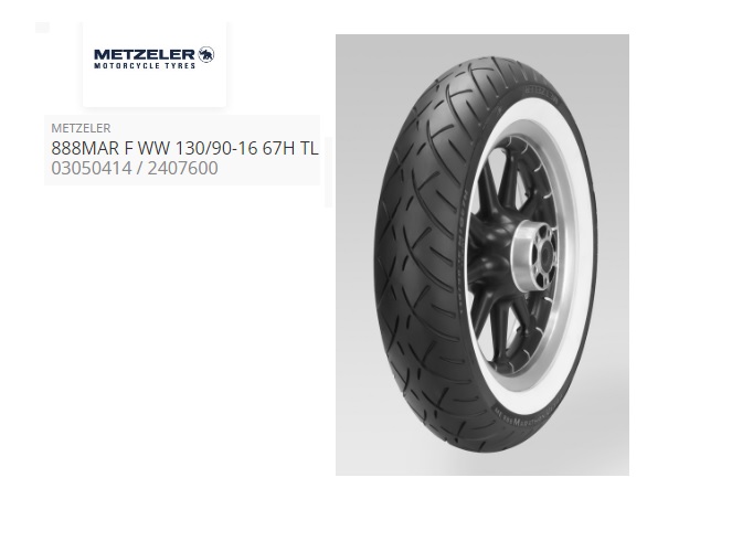 ref:03050414 pneu avant ME 888 Marathon Ultra 130/90-16 67H WW A FLANCS BLANC PAR Metzeler (TYPE EAN 1187506MT)