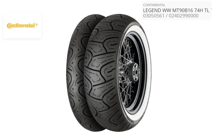 ref: 03050561 pneu avant a flanc blanc conti legend 130/90 B16 74H (TL)-(MT90B16) PAR CONTINENTAL (TYPE EAN 632772MT)