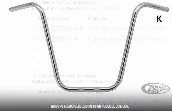 18" Ape Hanger, chromé, empreintes style A
