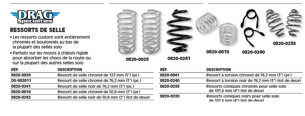 ref:08200041 ressorts de selle solo chrome type epingle 3" par drag specialties
