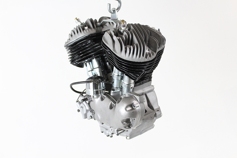 un couvercle de came lisse, des têtes à haute compression, un volant moteur V-Twin et des cames.