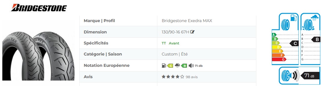 ref:1018288 PNEU AVANT bridgestone exedra max 130/90-16 67H (TT) par BRIDGESTONE