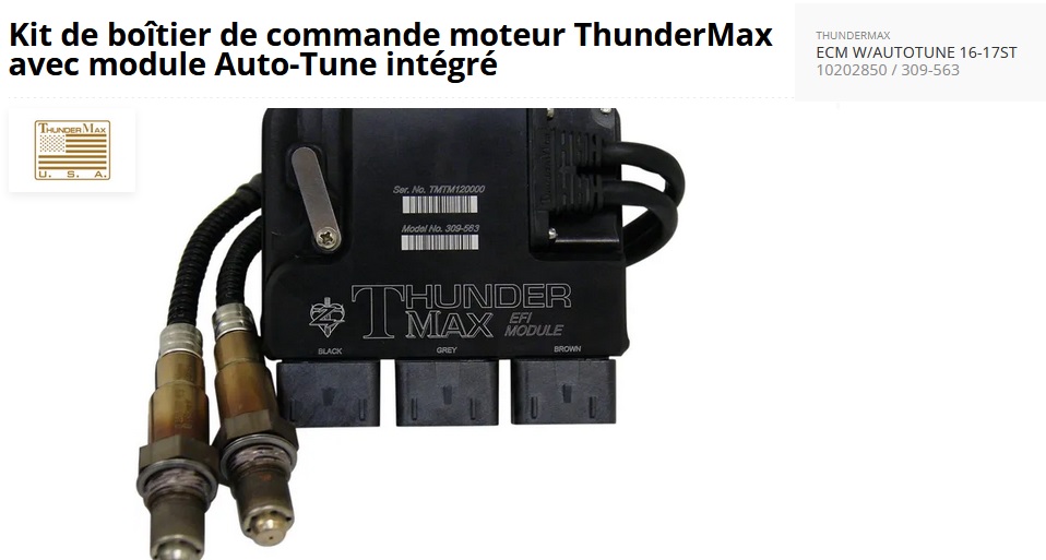 • Comprend l'ECM ThunderMax avec module Auto-tune, un faisceau et deux capteurs à piste large, le logiciel TMax software et un câble USB de communication, un guide de démarrage rapide et un manuel de l'utilisateur exhaustif, un support technique ainsi que des logiciels et mises à jour gratuits