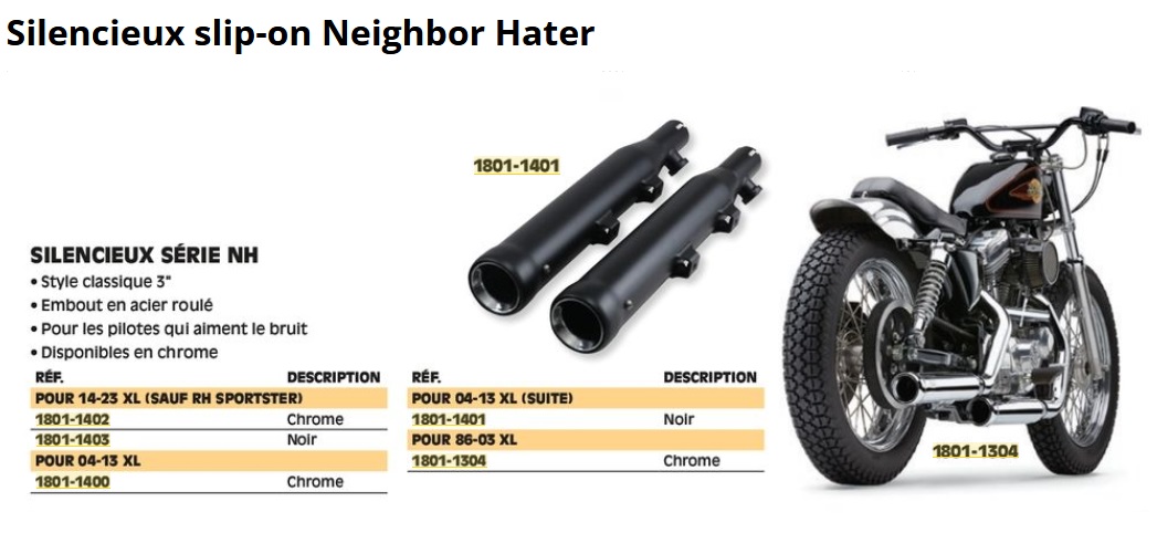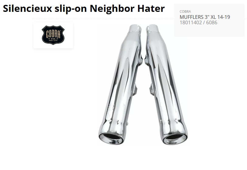 ref:18011402 silencieux neighbor hater rolled tip slip-on CHROME pour sportster XL à partir de 2014 par cobra type oem 6086