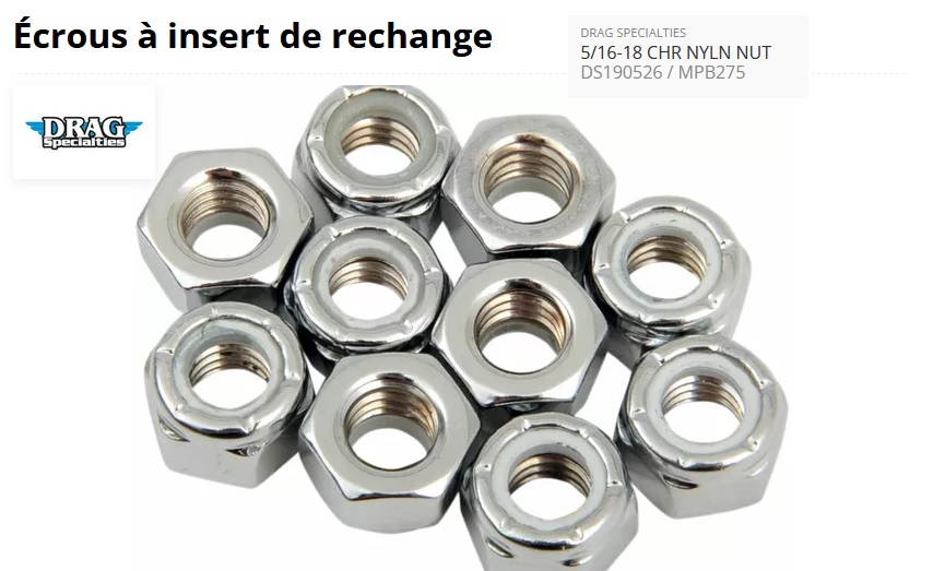 ref:190526 ecrous frein 5/16-18 - chrome 6 pans type oem MPB275 par DRAG SPECIALTIES