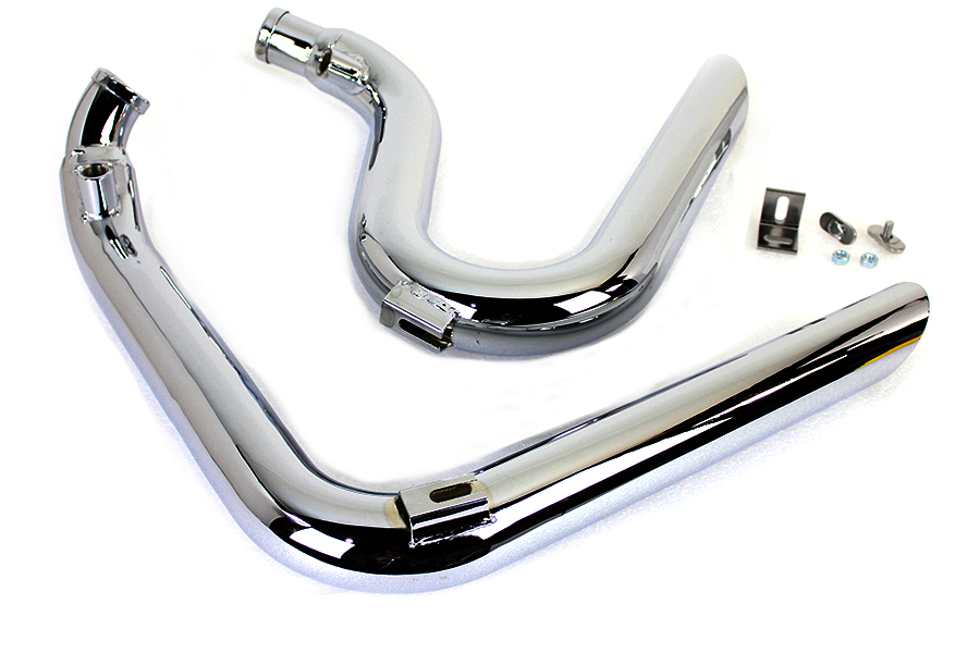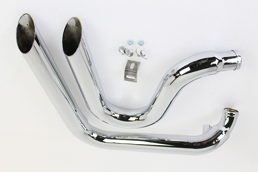Le jeu de tuyaux d'échappement FXST Zoomies dispose d'une finition chromée et d'un diamètre de 2-1/4" avec des extrémités coupées en biais.