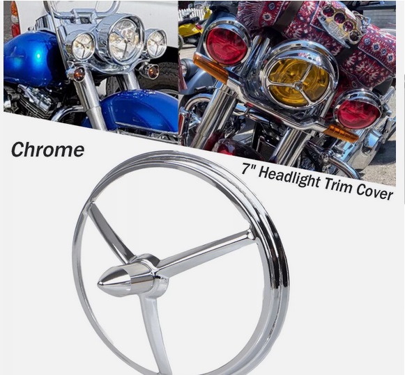 ref:33-0174 grille rail de feu type TRI-BAR pour feu phare de 7" chrome par vtwin manufacturing