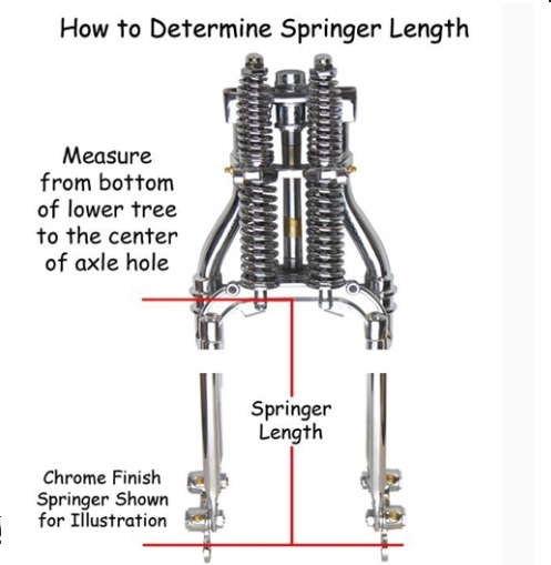 Le Springer de longueur standard (20" mesuré du bas de l'arbre inférieur au centre de l'essieu) est comparable à la longueur de fourche du modèle FL vintage