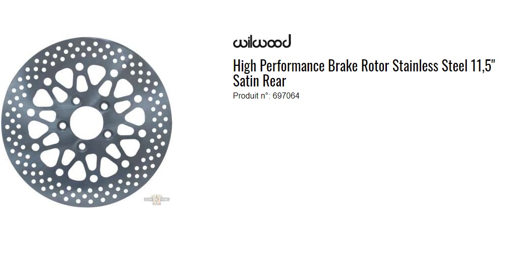 ref:697064 DISQUE DE FREIN ARRIERE 11.5" RIGIDE SATIN WILWOOD POUR MODELE DE 85 A 99 OEM 44101-95