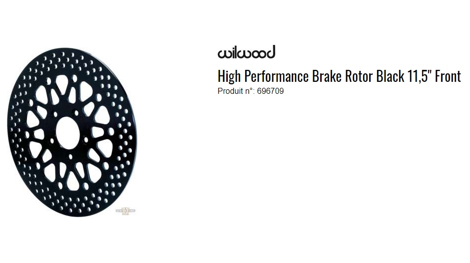 ref:696709 DISQUE DE FREIN AVANT 11.5" RIGIDE NOIR WILWOOD POUR MODELE DE 85 A 99 OEM 44101-95