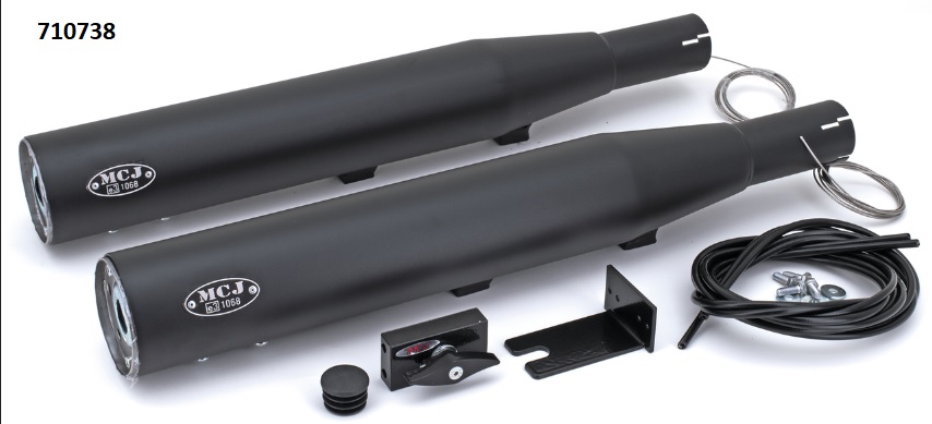 ref:710738 POTS SILENCIEUX MCJ REGLABLES HOMOLOGUES ROYAL 80 POUR TWIN CAM SOFTAIL 2000-2006 NOIR sans embouts PAR MCJ