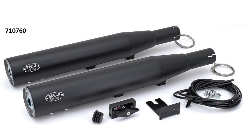 ref:710760 POTS SILENCIEUX MCJ REGLABLES HOMOLOGUES ROYAL 80 POUR TWIN CAM SOFTAIL 2004-2006 FXST Softail Standard, FXSTB Night Train et FXSTS Springer NOIR sans embouts PAR MCJ